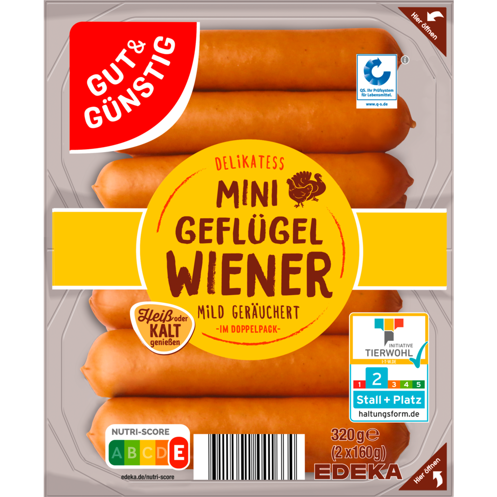 Würstchen im heißen Wasserbad etwa 5 Minuten ziehen lassen - nicht kochen!