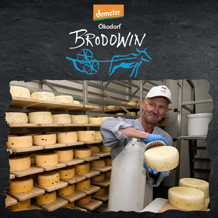 Nach der Wiedervereinigung 1990 fanden sich die Bewohner ganz Brodowins zusammen und beschlossen gemeinsam, aus der ehemaligen LPG einen Bio-Hof zu machen. Im Ökodorf Brodowin stehen die Tore für Mensch und Tier offen. Transparenz wird bei der Tierhaltung und Verarbeitung großgeschrieben. Neben der gläsernen Molkerei grasen die horntragenden Kühe, auf den Feldern wird neben Ackerbau auch Naturschutz betrieben. Die Brodowiner verzichten auf Chemie und setzen auf einen Kreislauf aus Boden, Pflanze und Tier. So bleibt die Natur gesund. Das schmeckt man.