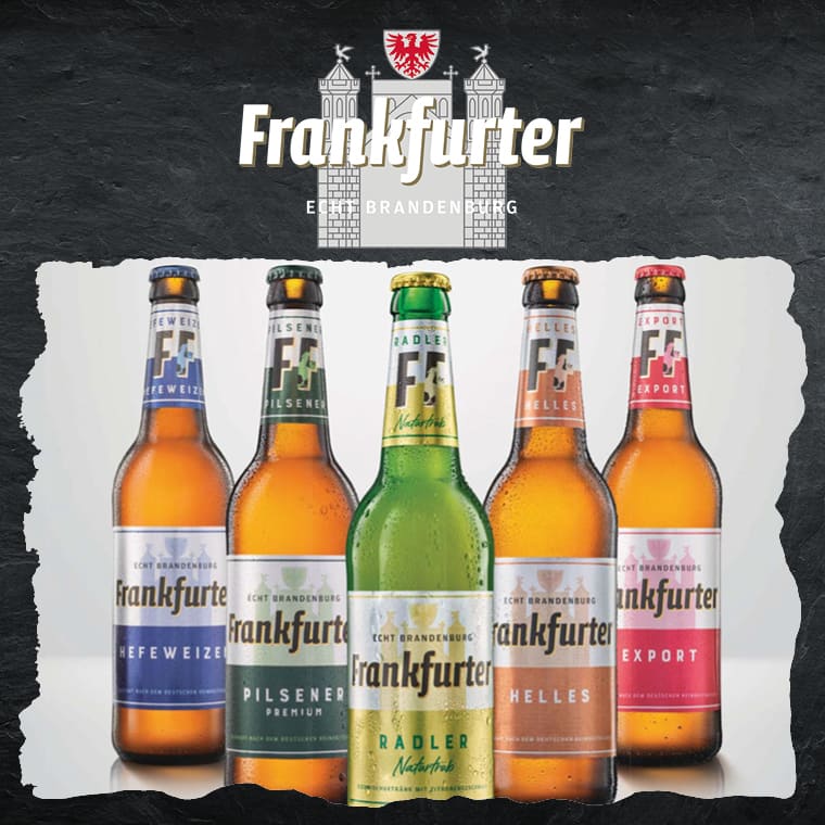 Das Frankfurter Brauhaus ist im Land Brandenburg stark verwurzelt. An einem der größten und modernsten Brauereistandorte in Deutschland wird hier in Frankfurt an der Oder eine über 600-jährige Brautradition erfolgreich fortgeführt. Kartäuser Mönche waren es, die in der Frankfurter Gubener Vorstadt aus Wasser, Malz und Hopfen anfingen, Biere zu brauen. Die Regionalmarke Frankfurter in den Sorten Pils, Export, Hell, Hefeweizen und Radler naturtrüb hat heute im Land Brandenburg ihre Heimat gefunden.