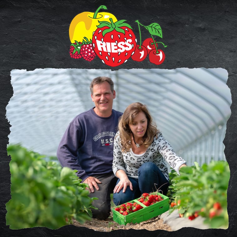 Mit einem Viehbetrieb ging es 1932 los. Doch ab 1975 wurde nach und nach ein Obstbaubetrieb unter der Führung von Matthias Riess in dritter Generation aufgebaut. Die erste Apfelplantage mit vielen tausend Bäumen hat im Jahr 1991 die erste Ernte eingebracht. Neben der Hauptkultur der Erdbeeren und Äpfel wurde das Sortiment mit Süßkirschen, Heidelbeeren, Pflaumen und Aprikosen nochmals erweitert.