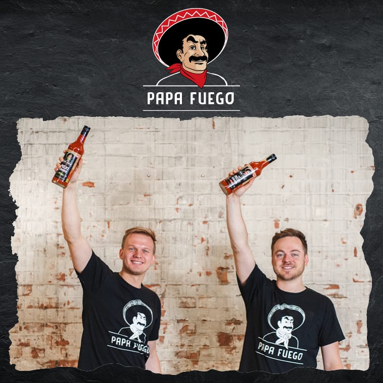 Einen Mexikaner herzustellen, der auf jeder WG-Party deutschlandweit getrunken wird: Das war die Vision der beiden Studenten Oliver Kern und Philipp Grimmel. Monatelang tüftelten die beiden am perfekten Rezept. Mit 75 % echtem Tomatensaft, der schärfsten Chili der Welt, weiteren Gewürzen und viel Liebe entstand 2017 der Papa Fuego Mexikaner. Und aus den Jungs sind junge Unternehmer geworden, die aus einer Schnapsidee den wohl schärfsten Mexikaner Deutschlands kreierten.