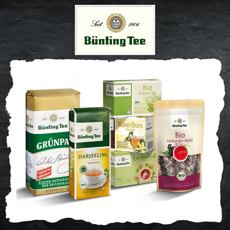 Als das älteste Privat-Teehandelshaus Ostfrieslands bringt Bünting mit über 200 Jahren Erfahrung und einem besonders hohen Qualitätsanspruch nur den allerbesten Tee in die Tassen seiner Liebhaber. Dafür steht bis heute der Name des Firmengründers Johann Bünting. Neben der ausgeprägten Schwarztee-Kompetenz hat sich Bünting Tee zu einem der wichtigsten Anbieter von zertifizierten Bio-Qualitäten im Kräuter- und Früchtetee-Bereich entwickelt und folgt damit dem allgemeinen Trend eines nachhaltigen und gesundheitsorientierten Lebensstils.