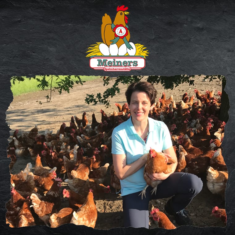 Auf dem Geflügelhof Meiners steht das Huhn immer an erster Stelle. Theo Meiners begann in den 60er-Jahren mit der Legehennenhaltung. Mittlerweile wird der bäuerliche Familienbetrieb in dritter Generation von Tochter und Geflügelwirtschafts-Meisterin Stephanie Meiners geführt. Modernste Technik im Stall sowie hochwertiges Futter sorgen unter anderem für das Wohl der Hühner. So heißt es hier: Hauptsache, den Hühnern geht es gut, denn das ist für die Qualität der Produkte enorm wichtig.