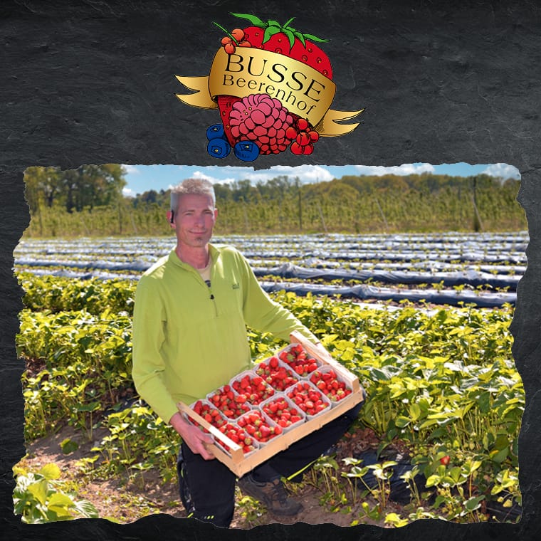 So geht es beim Beerenhof Busse zu! Auf über 30 Hektar baut die Familie köstliche Beeren an. Von Erdbeeren über Himbeeren bis hin zu Brombeeren - hier ist für jeden Geschmack etwas dabei. Die kleinen Vitaminlieferanten werden nach dem Pflücken sofort in der Region ausgeliefert. Um die Frische zu garantieren, wird auch nachgeliefert. Verpackt werden sie in kompostierbaren Materialien, wie Holzkörben und Pappschalen. Holzsteigen werden zurückgenommen und wiederverwertet. Eben nachhaltig und frisch.
