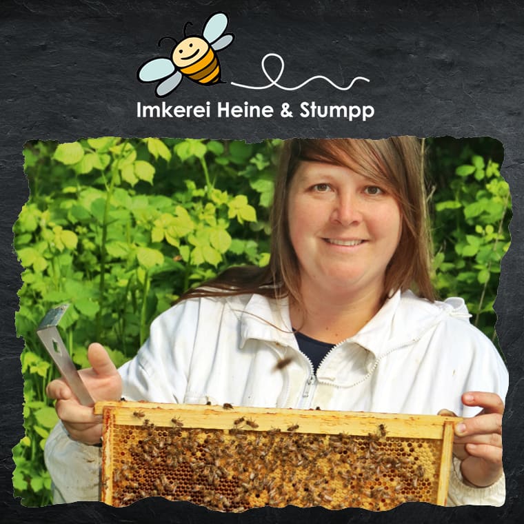Anna Heines Interesse für Bienen wurde durch einen Radiobericht geweckt. Dieser erinnerte sie daran, dass auch ihr Opa Imker war. Es folgten Besuche bei anderen Imkern, Bücher und zahlreiche Lehrgänge, um das nötige Wissen zu erlangen. Im Anschluss wurde ein geeigneter Standplatz eingerichtet, ein Imkeranzug und das nötige Werkzeug wurden bestellt. Dann war es so weit: Die ersten Bienen zogen bei ihr ein. Nur kurz darauf war auch Kilian Stumpp mit dem Imkervirus infiziert, und seitdem widmen sich beide gemeinsam mit viel Herzblut ihren Bienen.