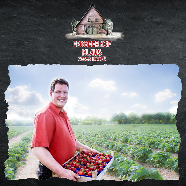 Seit 2003 baut Carsten Klaus rund um das kleine Dorf Hoope leckere Erdbeeren an – ein kleiner Familienbetrieb, in dem jeder anpacken muss. Auch Oma und Opa und die eigenen Kinder wissen, dass in der Erdbeerzeit jede helfende Hand benötigt wird. Aber die Liebe und Leidenschaft zu den Erdbeeren treibt die Familie jeden Tag an. Der Familienbetrieb wird bereits in der sechsten Generation geleitet. Durch die sehr kurzen Transportwege bleiben die Erdbeeren frisch und saftig und stecken voller Vitamine. Auf diesem Hof dreht sich alles um die Erdbeere.