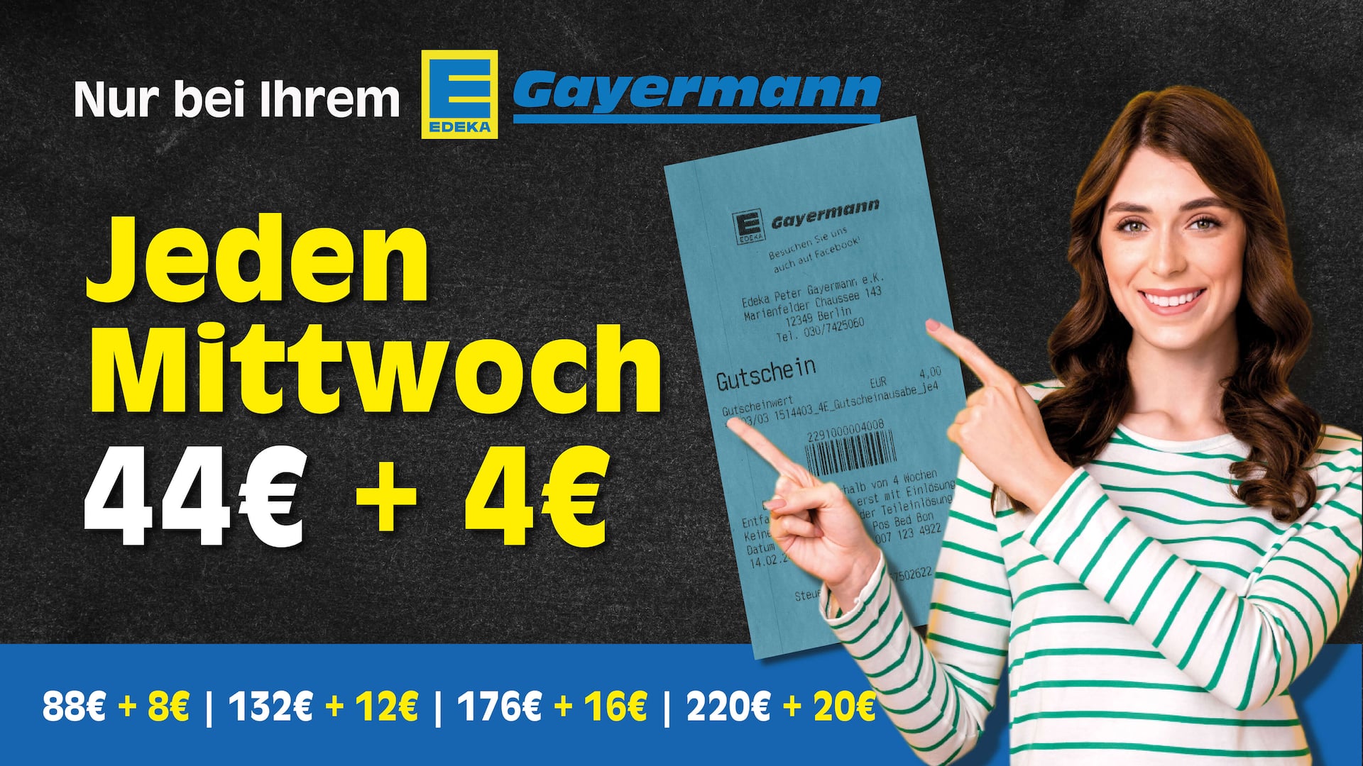 Bei einem Einkaufswert ab 44€ erhalten Sie jeden Mittwoch einen entsprechenden Rabattcoupon* für Ihren nächsten Einkauf.