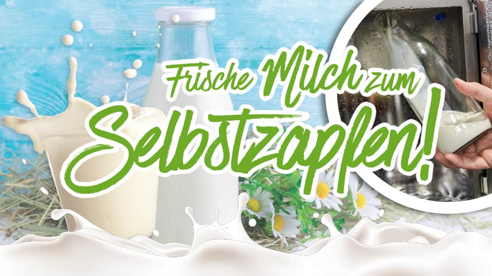 Sie erhalten bei uns zapf-frische Vollmilch direkt aus der Region an unserem neuen Milch-Automaten. Wir überzeugen durch unseren Nachhaltigkeitsgedanken - mit Glasflaschen zum Wiederbefüllen und kurzen Lieferwegen. Frischer und leckerer geht es kaum. Probieren Sie es aus!
