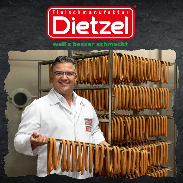 Als Familienunternehmen in dritter Generation sind das Handwerk und die Tradition der Ursprung meisterlichen Know-hows bei Dietzel. Seit 2013 hat die Fleischmanufaktur Dietzel eine eigene Schweinezucht, die hinsichtlich des Tierwohl, der Haltung und der Futtermittel - weit über den gesetzlichen Standard hinaus - strengsten Anforderungen entspricht. Mit dem Herzensprojekt »Teutschenthaler Naturfleisch« wird außerdem ein Konzept geboten, das nachhaltig ist und Transparenz schafft und bei dem das Thema Tierwohl immer an erster Stelle steht.