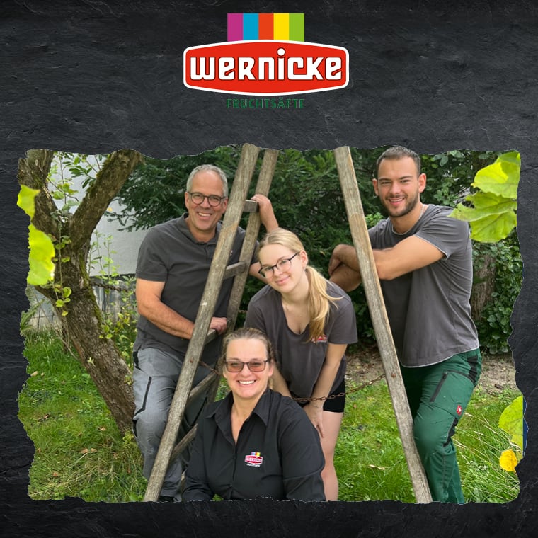 Seit über 85 Jahren werden bei Familie Wernicke Köstlichkeiten aus leckeren heimischen Früchten hergestellt. Die ebenfalls zum Sortiment gehörenden Exoten dürfen im Ursprungsland fertig reifen und kommen als Mark oder Püree in die Kelterei. Damals wie heute werden die Waren mit besonderer Sorgfalt verarbeitet, um den hohen Qualitätsansprüchen der Saftliebhaber gerecht zu werden. Diese Sorgfalt bei der Produktion und der garantiert gute Geschmack würden jeden Apfel dazu animieren, wie von selbst in Wernickes Flasche zu hüpfen.