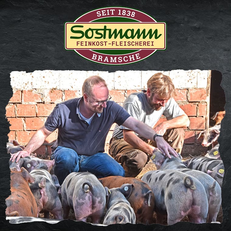 Im Mai 1838 eröffnete der Fleischermeister Johann Friedrich Sostmann in Bramsche eine Rind- und Schweineschlachterei. Mit zwei Mitarbeitern legte er den Grundstein für eine Firmentradition über inzwischen sechs Generationen. Die traditionelle Herstellung nach überlieferten Rezepten zeichnet die Produkte aus. Sostmann ist eine handwerkliche Feinkost-Fleischerei, die zu den ganz wenigen gehört, die noch selbst schlachten. Die Tiere stammen aus streng kontrollierter Aufzucht und Haltung von bäuerlichen Familienbetrieben rund um Bramsche.