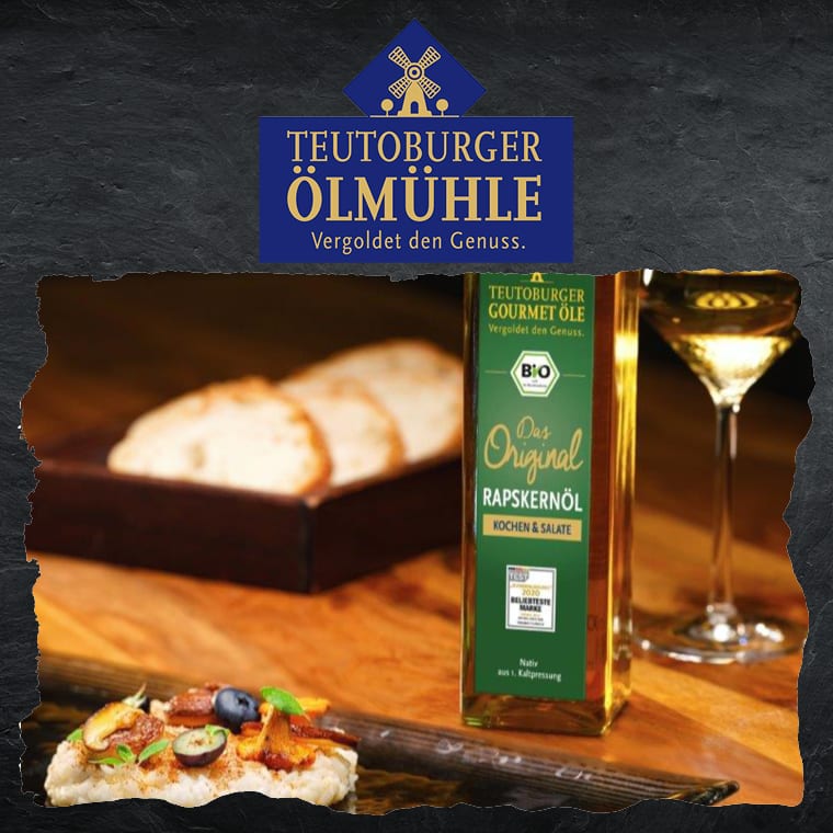 Im beschaulichen Ibbenbüren (Münsterland) werden seit über 20 Jahren feinste Rapskernöle in Sterneküchen-Qualität hergestellt. Das Besondere: Die schwarze, bitter schmeckende Schale wird von der Saat entfernt, und nur der winzige, goldgelbe Kern wird schonend kaltgepresst. Es ist also dieses Genussgeheimnis, weshalb die Teutoburger Gourmetöle so mild und fein-nussig schmecken. So passen sie vielseitig zu jedem Gericht und können bis zu 180°C erhitzt werden. Sterneköche sind überzeugt: So geht Gourmetgenuss zuhause.