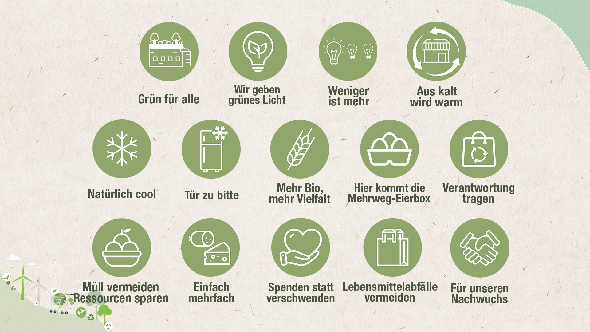 Außerhalb unserer Öffnungszeiten brauchen wir nicht so viel Licht, um im Markt zu arbeiten. Unsere Marktbeleuchtung wird für die Zeit nur zu einem Drittel genutzt, womit wir mehr Energie sparen und unseren CO2-Ausstoß verringern.