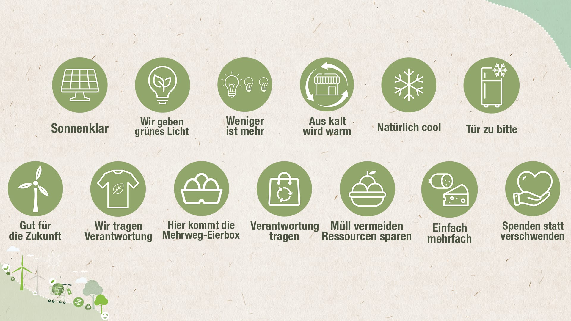 Außerhalb unserer Öffnungszeiten brauchen wir nicht so viel Licht, um im Markt zu arbeiten. Unsere Marktbeleuchtung wird für die Zeit nur zu einem Drittel genutzt, womit wir mehr Energie sparen und unseren CO2-Ausstoß verringern.
