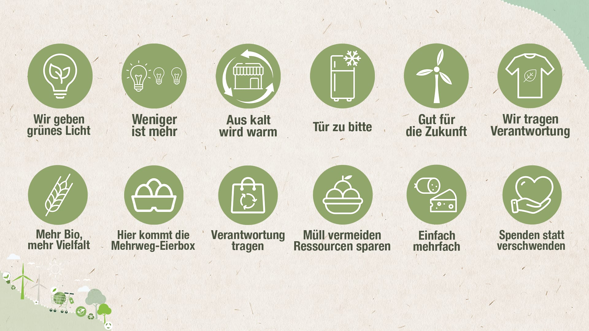Außerhalb unserer Öffnungszeiten brauchen wir nicht so viel Licht, um im Markt zu arbeiten. Unsere Marktbeleuchtung wird für die Zeit nur zu einem Drittel genutzt, womit wir mehr Energie sparen und unseren CO2-Ausstoß verringern.