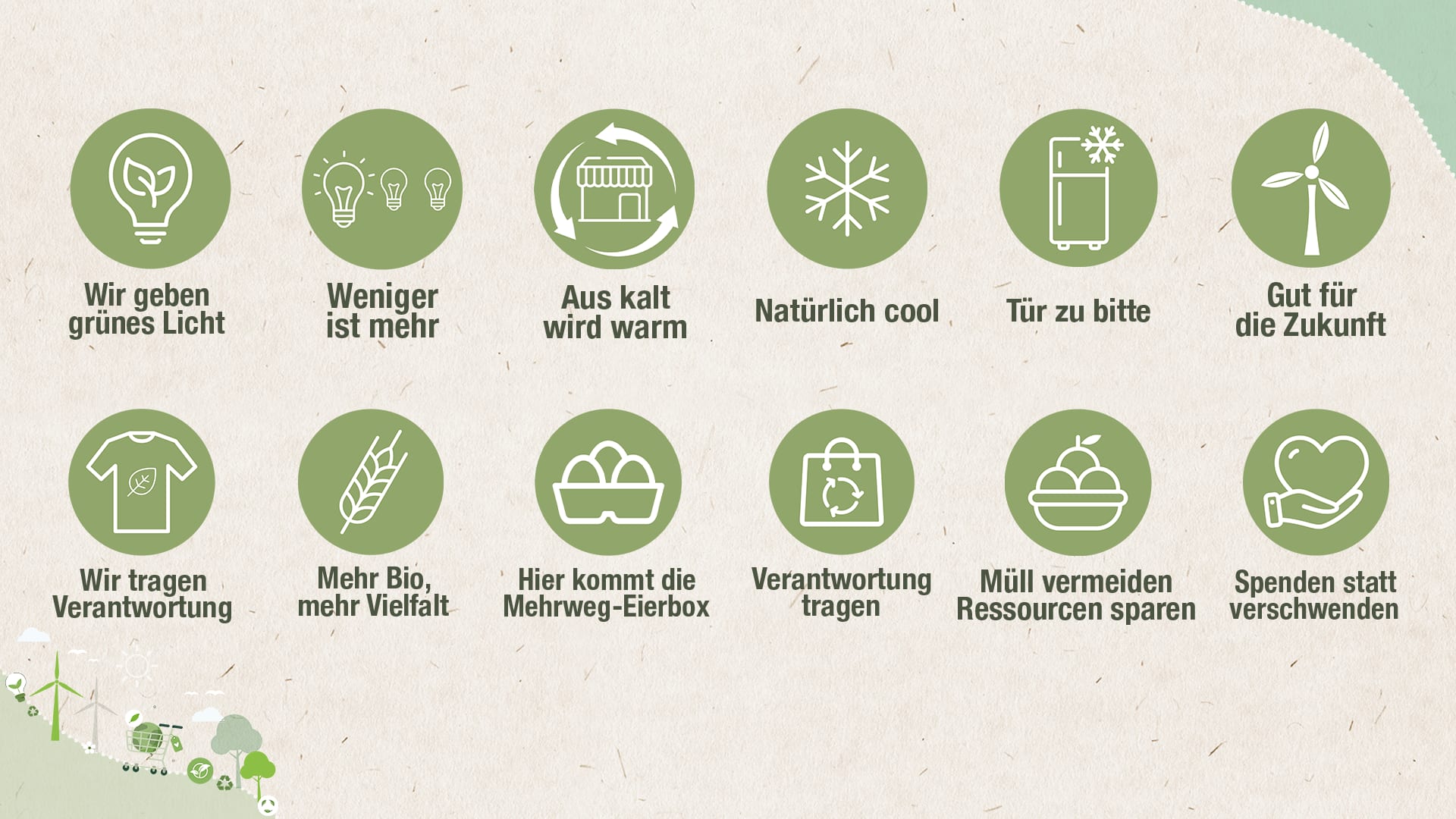Grünstrom ist ein wichtiger Bestandteil für die Energiewende. Die Nachfrage und Nutzung erneuerbarer Energien führen zu einer Verdrängung von fossilen Energien wie beispielsweise Erdgas und Braunkohle. Unser Markt bezieht zu 100 Prozent Grünstrom.