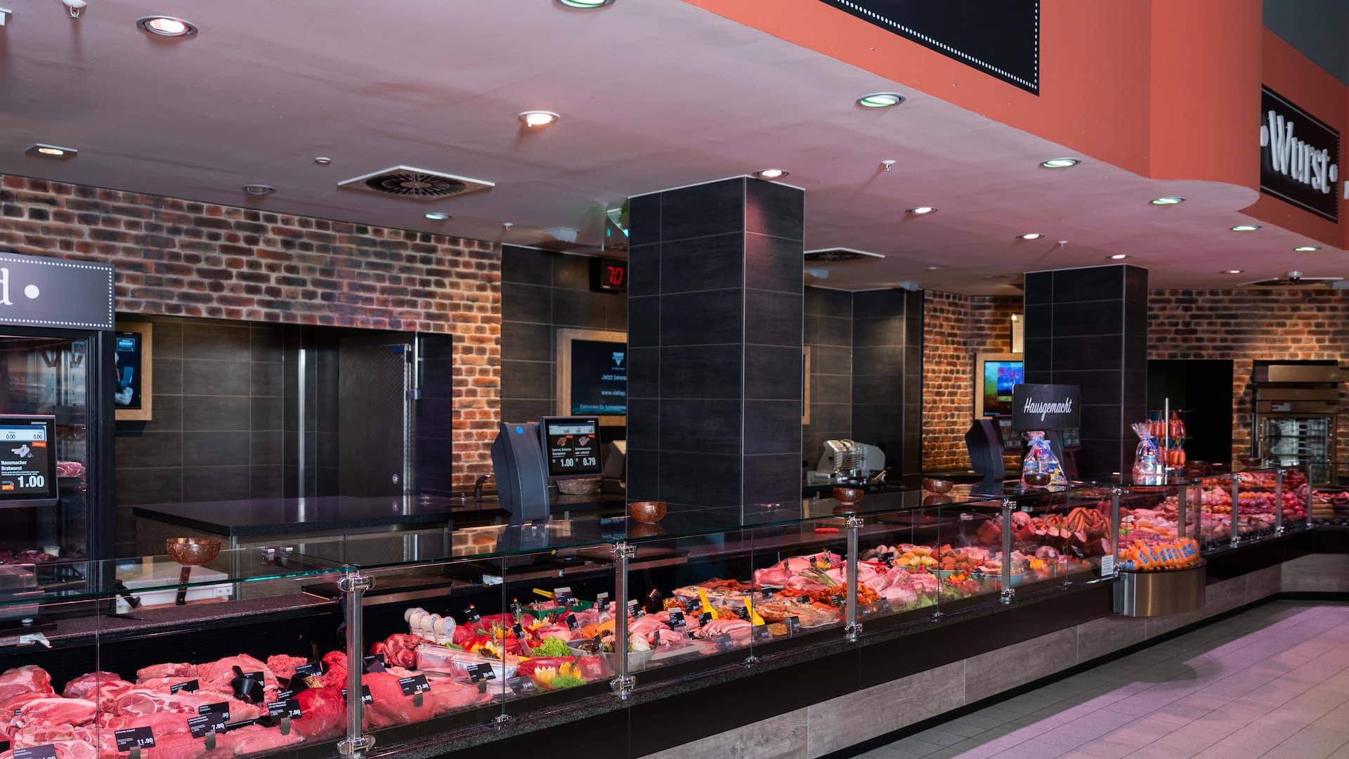 Das Herzstück unseres Markts ist die Frischetheke mit ihren stolzen 18 Metern Länge. Genießen Sie die Vielfalt und Qualität unserer Fleisch- und Wurstwaren aus eigener Herstellung aus der Genussmanufaktur Schraml: Weißwürste, Wiener und viele verschiedene Varianten an Fleischkäse sowie die originalen Rawetzer Bratwürste und Steaks, außerdem unsere hausgeräuchten Spezialitäten wie Pfefferbeißer, Mettwurst und Rindfleischwurst. Für Kenner gibt es auch eine Dry Aged Beef Theke.