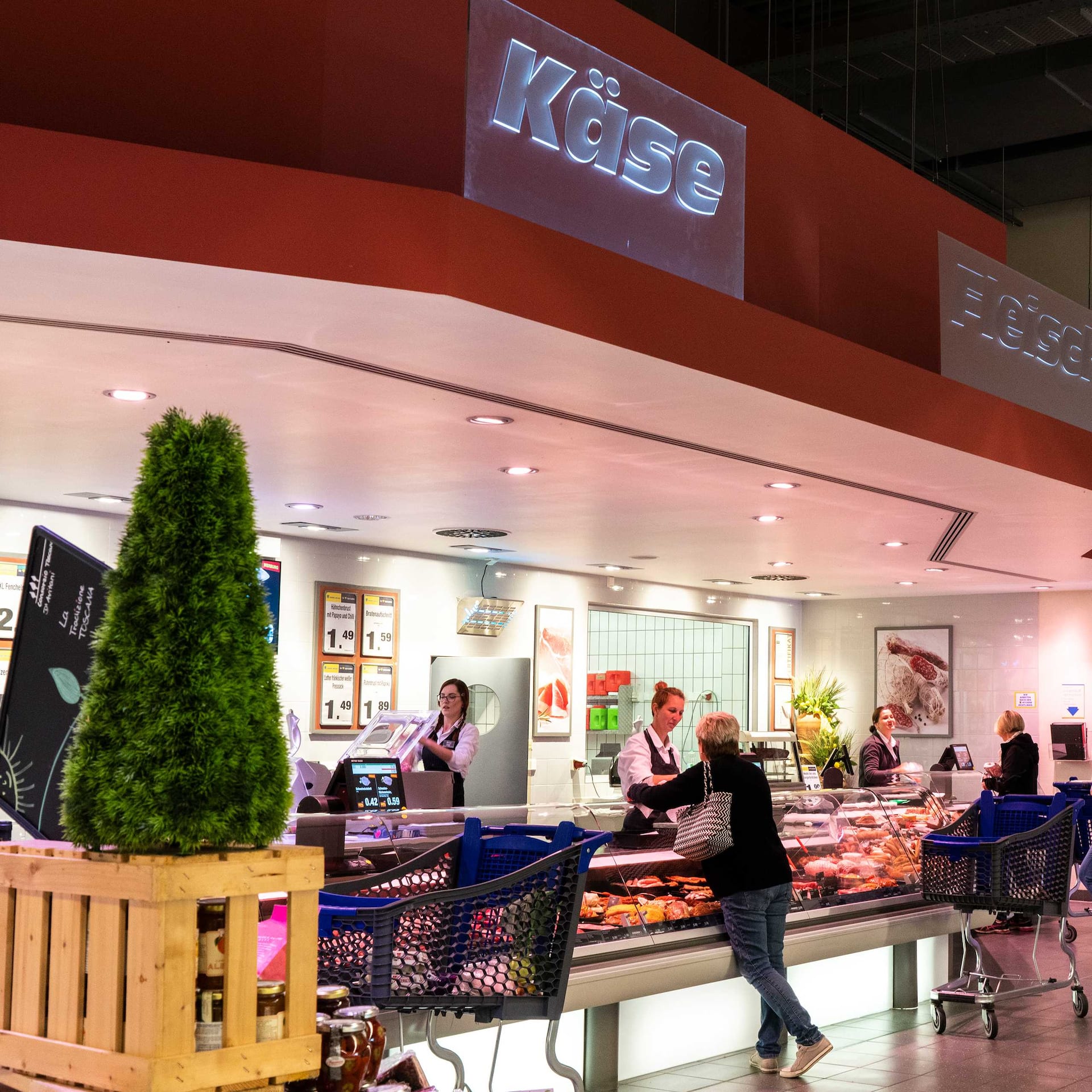 Unsere Bedientheke hat viel zu bieten, vor allem aber Qualität. Unsere hochwertigen Produkte bereiten wir selbst vor und veredeln sie mit feinen Gewürzen nach eigenen Rezepten. Hinter jeder unserer Theken steht Ihnen unser geschultes Fachpersonal mit Rat und Tat zur Seite. Für die einzigartige Fleischqualität sorgen unsere Metzger, von denen mindestens einer in jedem unserer Märkte zu finden ist. Neben ihnen bereichern auch viele gelernte Fachverkäufer/innen unser Tagesgeschäft. Probieren Sie zum Beispiel unsere typisch fränkischen Bratwürste aus eigener Herstellung und überzeugen Sie sich von der Frische unserer Fischtheke in unseren E centern.