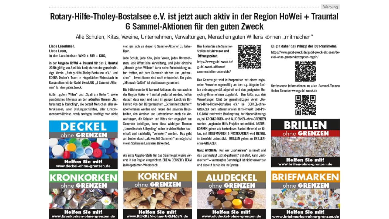 Seit Anfang 2020 gibt es dazu in Zusammenarbeit mit der GUDD ZWECK UG aus Oberkirchen, an den Leergutautomaten von EDEKA Decker’s Team in Hoppstädten-Weiersbach und Birkenfeld Spendenkästen für Leergutbons.