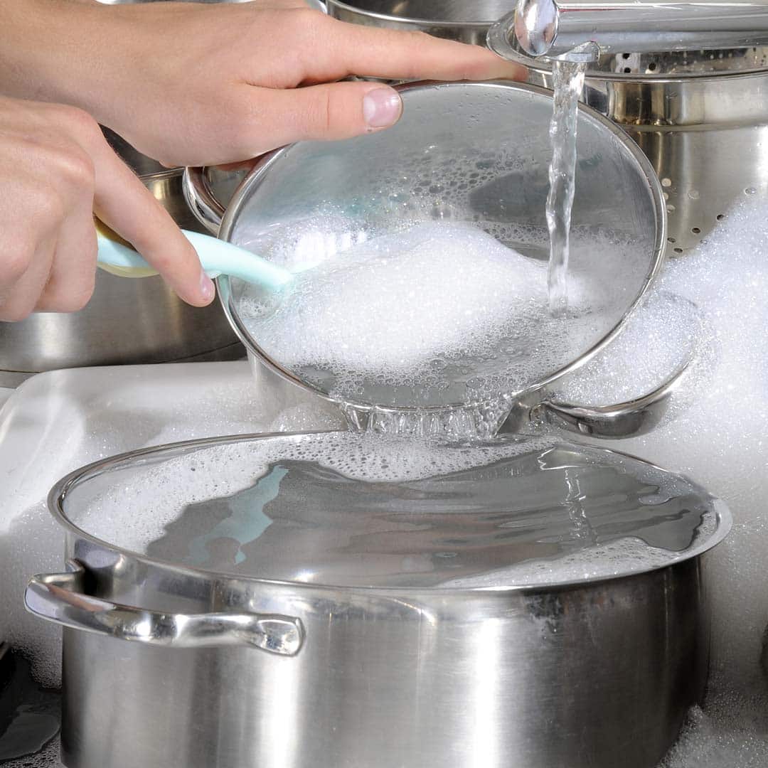 Tipp: Alternativ können Sie auch mit Waschmittel einen angebrannten Topf reinigen. Streuen Sie es hierfür auf den Topfboden. Bedecken Sie es dann mit Wasser, kochen Sie den Mix kurz auf und und lassen ihn ebenfalls dreißig Minuten einwirken. Wenn Sie übrigens einen angebrannten Topf säubern, der aus Edelstahl besteht, sollten Sie nie Stahlwolle benutzen. Sie kann das Metall stark beschädigen und verkratzen.