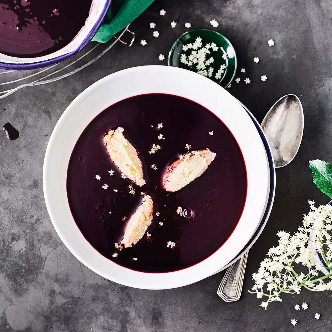 Überraschen Sie Ihre Gäste mit einer feinen Holunderbeeren-Suppe.