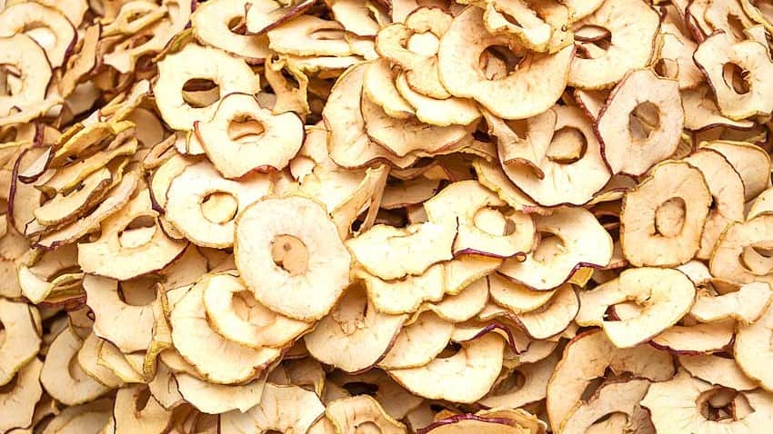 Getrocknete Äpfel schmecken durch die höhere Zuckerkonzentration süßer als frische Äpfel.