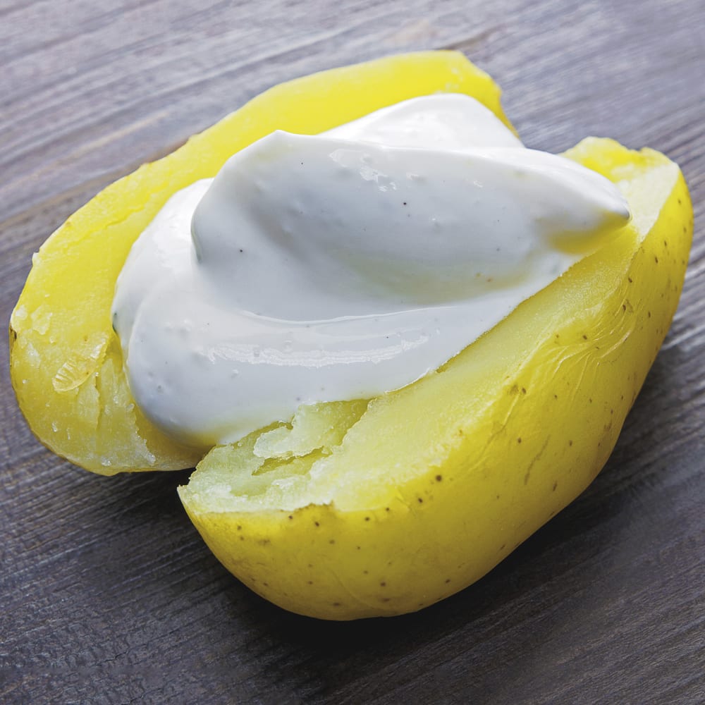 1. Kartoffeln gründlich waschen und in einem großen Kochtopf mit Wasser bedecken. Zugedeckt das Wasser aufkochen und anschließend bei mittlerer Hitze circa 25 Minuten köcheln lassen.