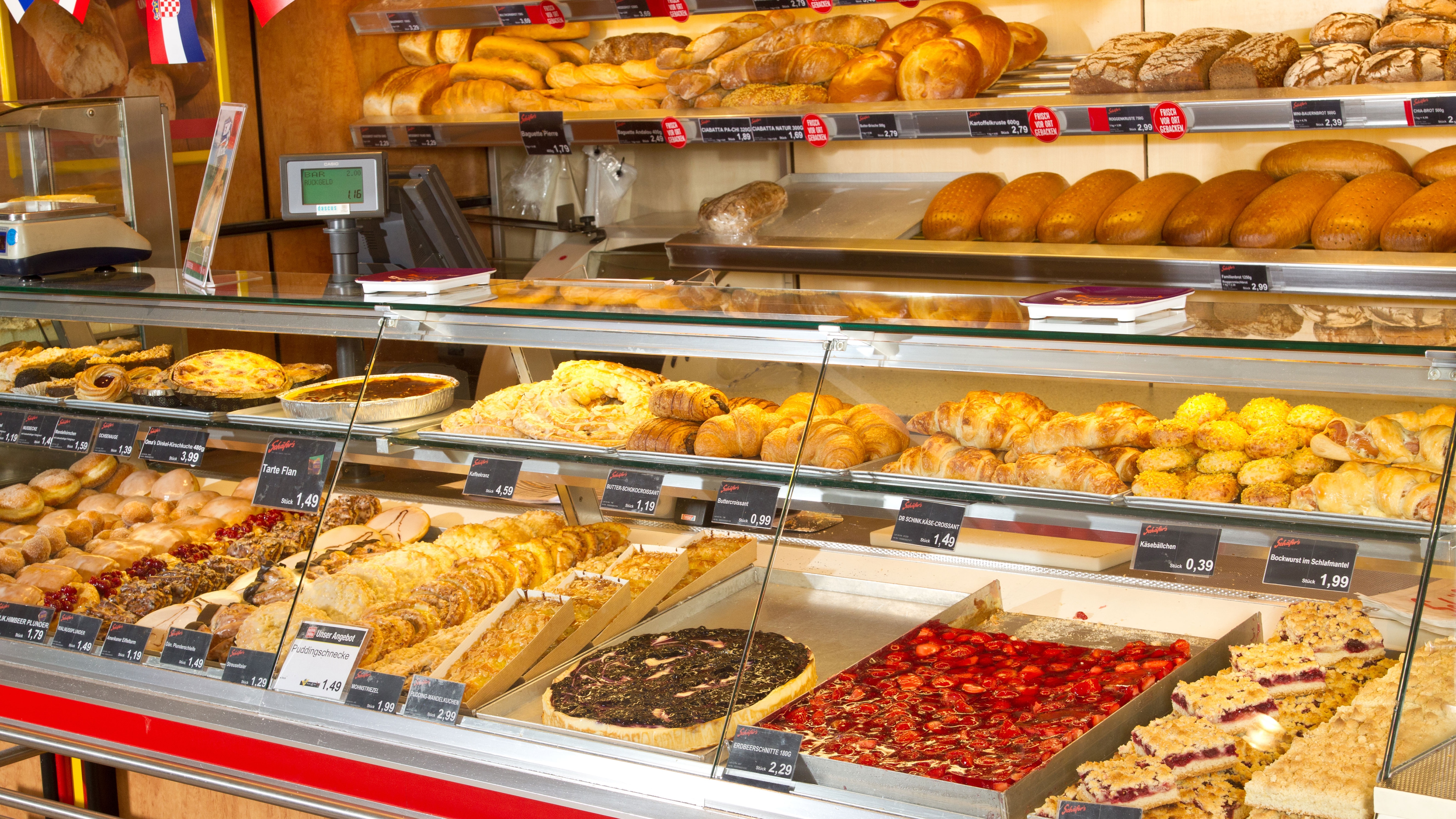 Unser Schwerpunkt liegt auf frischen Lebensmitteln. Darum bieten wir euch Käse, Fleisch und Wurst sowie Backwaren in Bedienung, und nur das beste Obst und Gemüse.