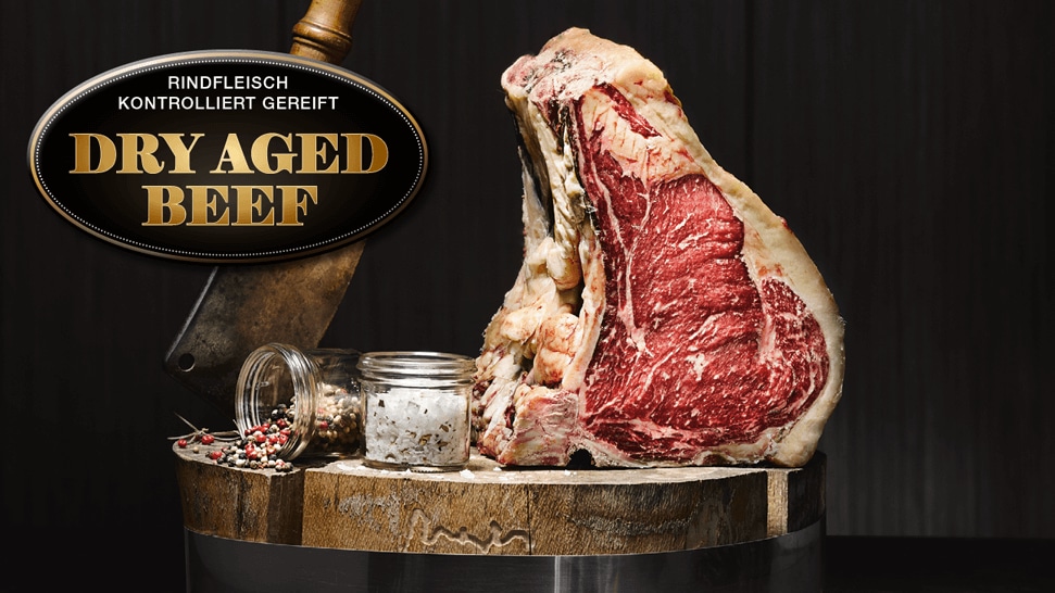 In unserem Reifeschrank lagert für euch feines Entrecôte undRoastbeef zu einer ganz besonderen Spezialität ab: Dry AgedBeef. Probiert diese buttrig-nussigen Steaks mit kräftigem Aroma!