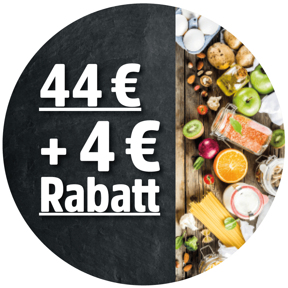 Kaufe mittwochs für 44€* ein und bekomme einen 4€-Rabatt-Coupon für deinen nächsten Einkauf extra dazu!