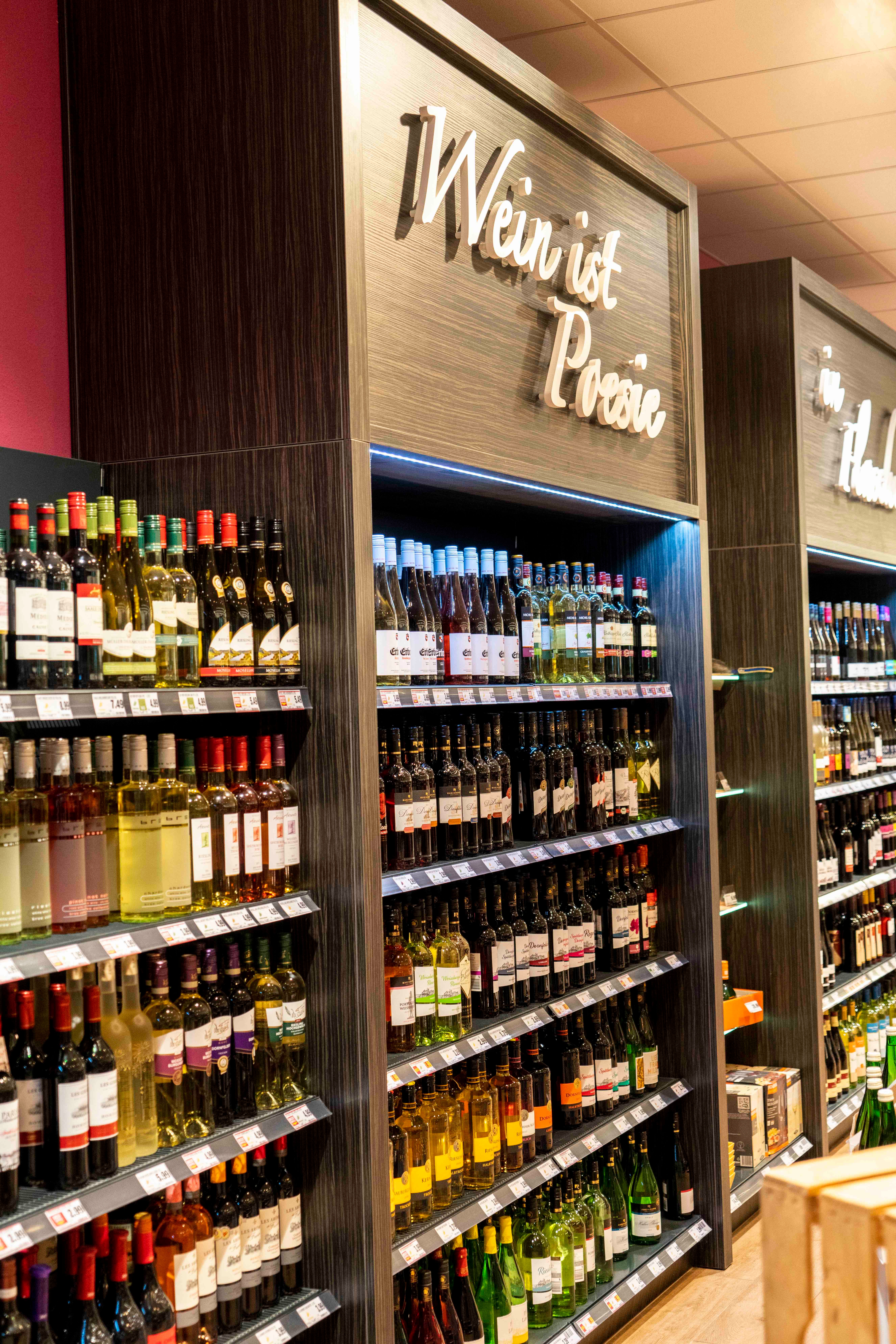 In unserem Wein- und Spirituosensortiment findest du sicher das Passende für jeden Geschmack. Wir arbeiten sowohl mit regionalen als auch mit internationalen Lieferanten zusammen. In einer Vitrine stellen wir exklusive und hochpreisige Spirituosen aus.