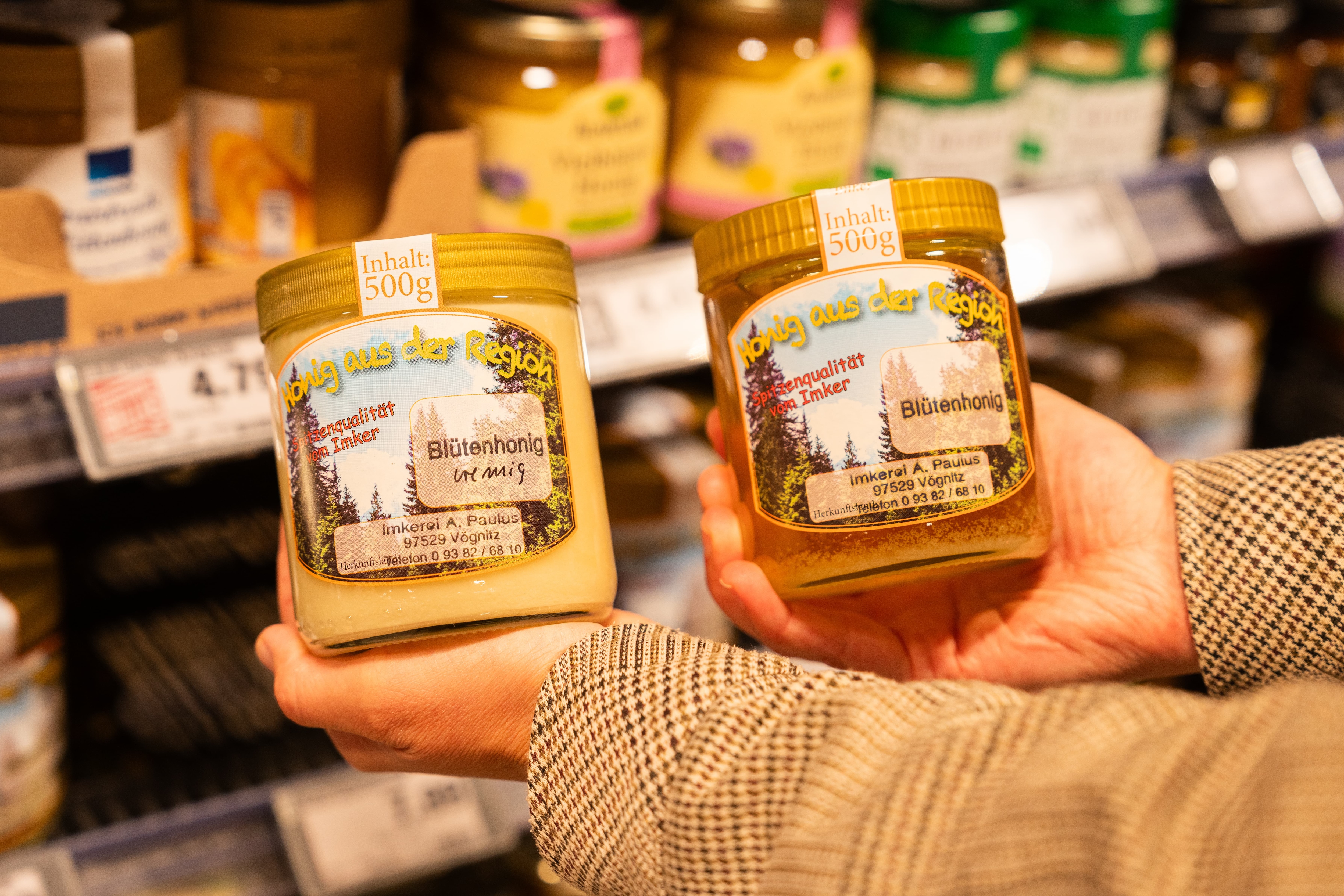 In Gochsheim bieten wir zudem als Besonderheit den Gochsumer Honig an, der von Bienenvölkern aus der Gemeinde stammt. Selbstverständlich sind wir ständig auf der Suche nach neuen regionalen Erzeugern und freuen uns immer auf die Neuzugänge in den Regalen.