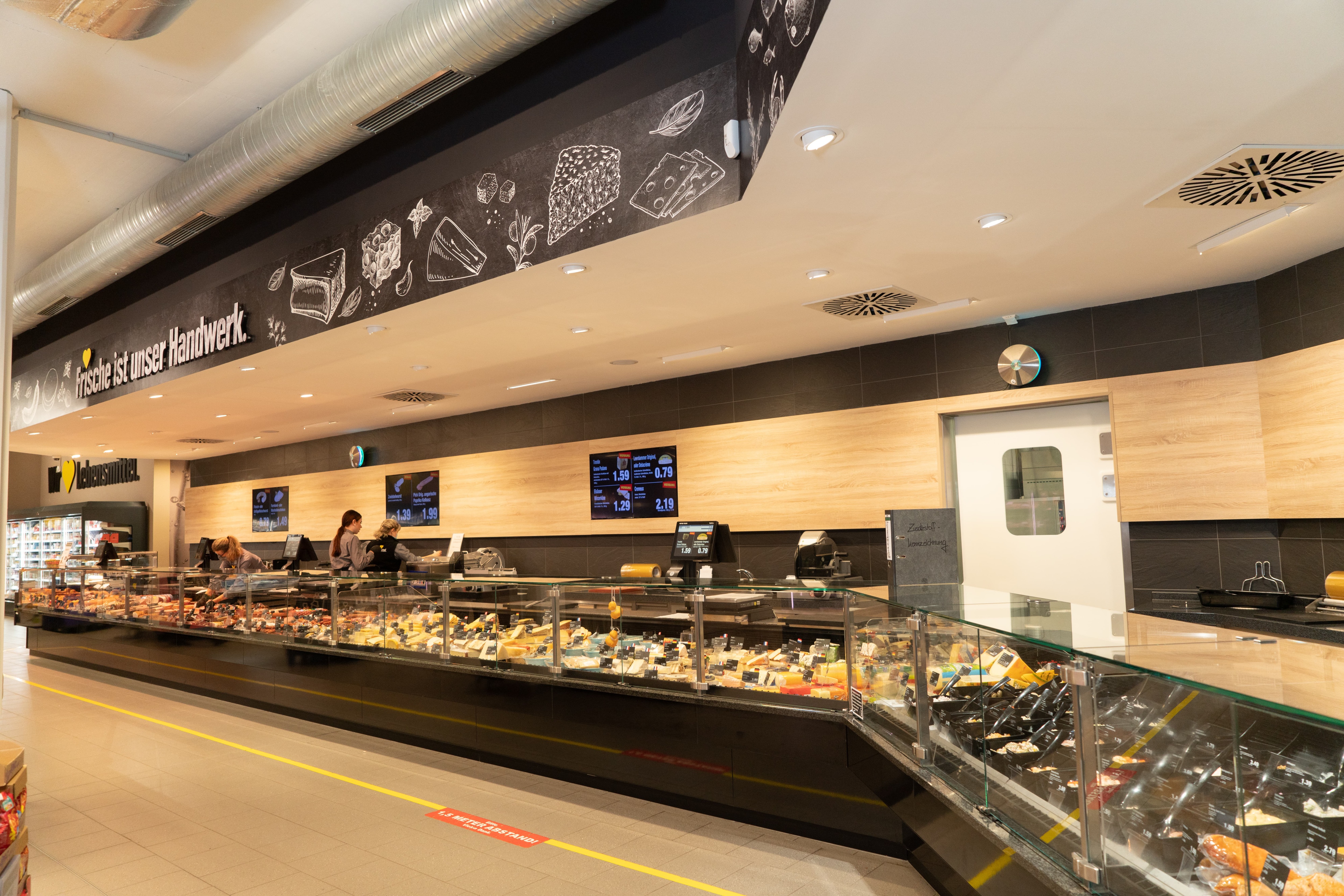Ein großes Sortiment an regionalen, nationalen und internationalen Wurst- und Käsespezialitäten bekommst du an unseren Bedientheken. Hier steht neben 250 unterschiedlichen Käsevariationen frischer Fisch aus der Deutschen See auf dem Speiseplan. Oder du wählest Fleisch aus der bäuerlichen Erzeugergemeinschaft Schwäbisch Hall, die für artgerechte Tierhaltung steht.