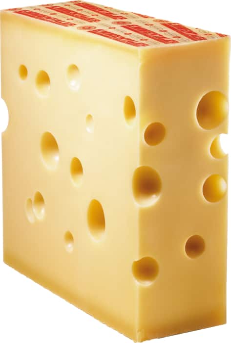 Deutsche Schnittkäse, geschmeidig-sanfter Teig, gleichmäßige, kirschgroße Lochung bis zum Rand, einzigartiger Geschmack, 30/45% Fett i. Tr., Bedienungsartikel nicht in allen Märkten erhältlich, je 100g