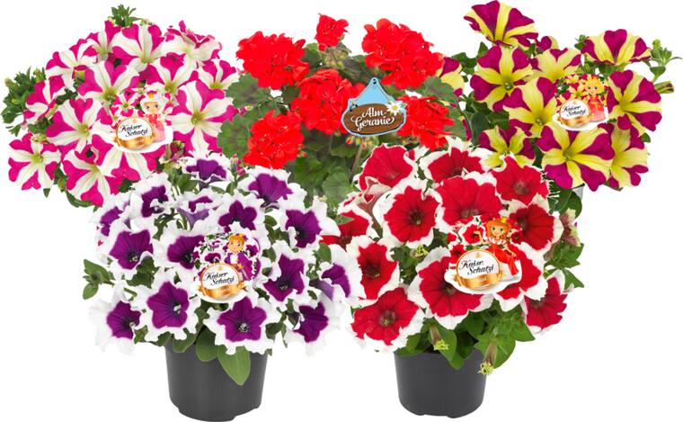 in verschiedenen Farben, Pflanzensortiment nicht in allen Märkten erhältlich, je Bund