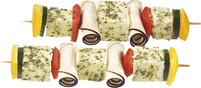 Grillkäse, mind. 40% Fett i. Tr., mit verschiedenem Gemüse, in einer feinen Marinade, aus eigener Herstellung, 100 g