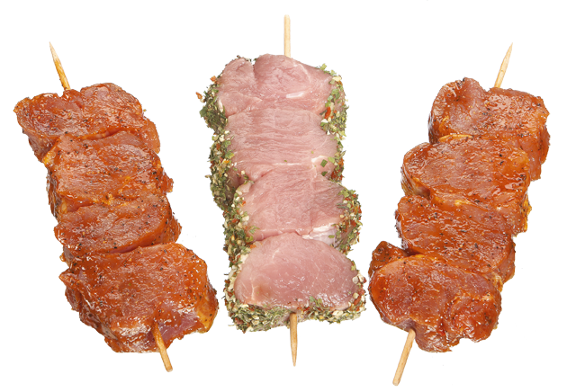 am Stück oder in Scheiben, -Spieße, natur oder mariniert, ideal für Grill und Pfanne oder -Geschnetzeltes Stroganoff, ideal zum Kurzbraten, zart und saftig, 100 g