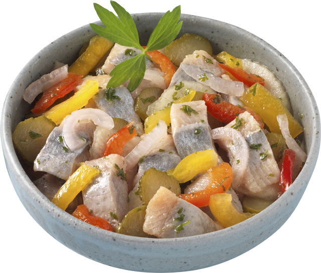 Matjesstreifen mit Äpfeln und Paprika, in einer feinen, klaren Marinade, 100 g