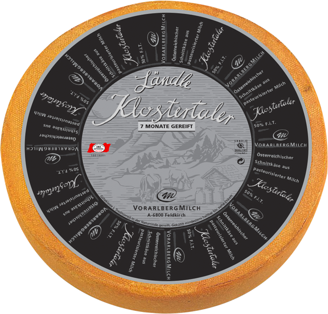 österreichischer Schnittkäse, mind. 50% Fett i. Tr., aus bester Vorarlberger Milch, Naturrinde, mind. 7 Monate gereift, natürlich laktosefrei, würzig-kräftig im Geschmack, 100 g