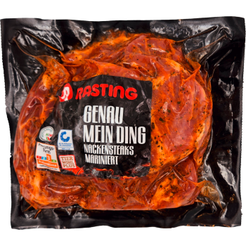 mit Haut, ohne Knochen, mariniert mit Rasting No. 1 Red Chicken, je 100 g