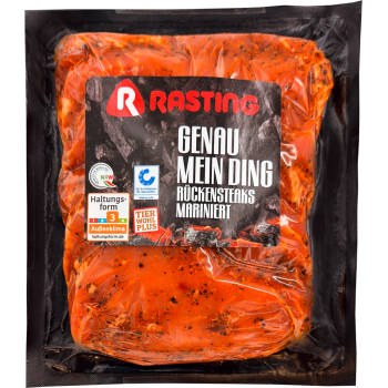 mit Haut, ohne Knochen, mariniert mit Rasting No. 1 Red Chicken, je 100 g