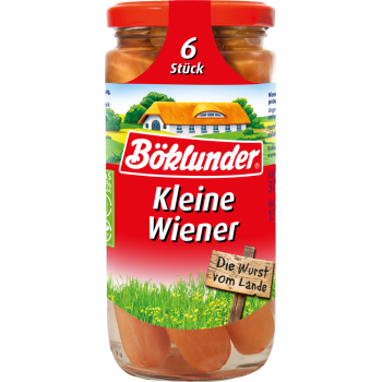 auch Böklunder Kleine Wiener mit Kalbfleisch im Angebot, je 6 Stück = 380 g Glas / 150 g Abtropfg., (1 kg = € 13.27)