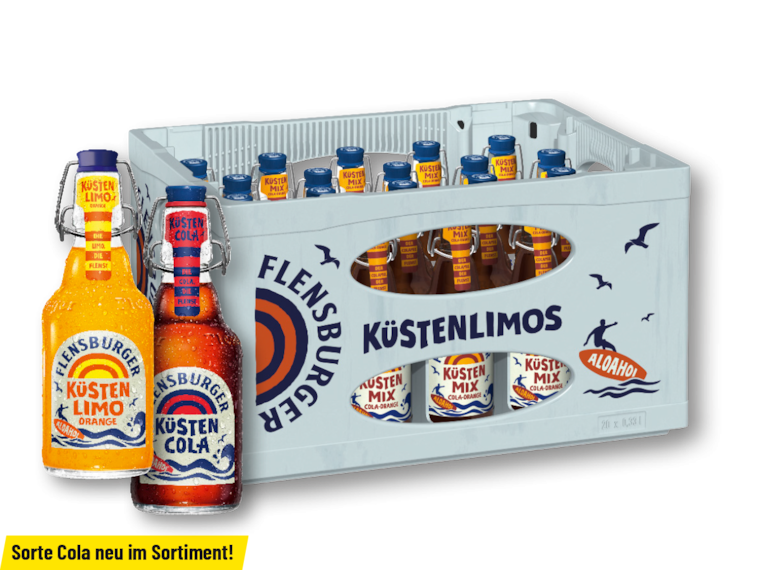 Cola, Orange oder Küsten-Mix Cola-Orange, Kasten = 20 x 0,33 l Glas (1 l = € 2.42) zzgl. € 4.50 Pfand, Kasten
