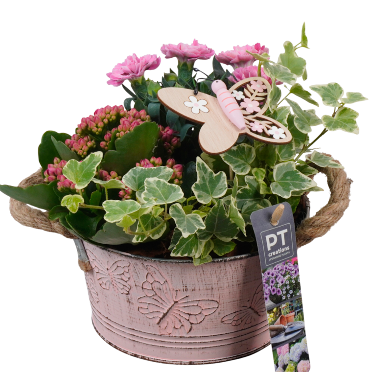 Nelke, Kalanchoe, Efeu und Stecker, 16 cm Schale