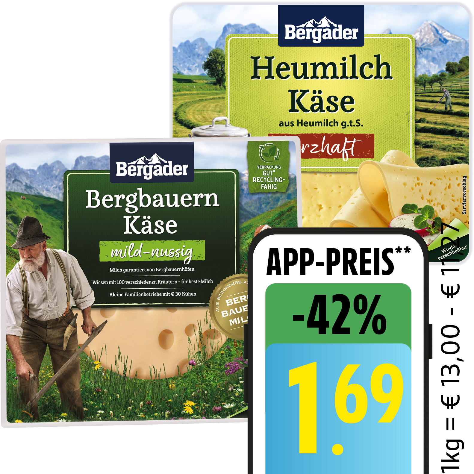 Angebot: Bergader Bergbauern Käse, Heumilchkäse oder Bergkäse