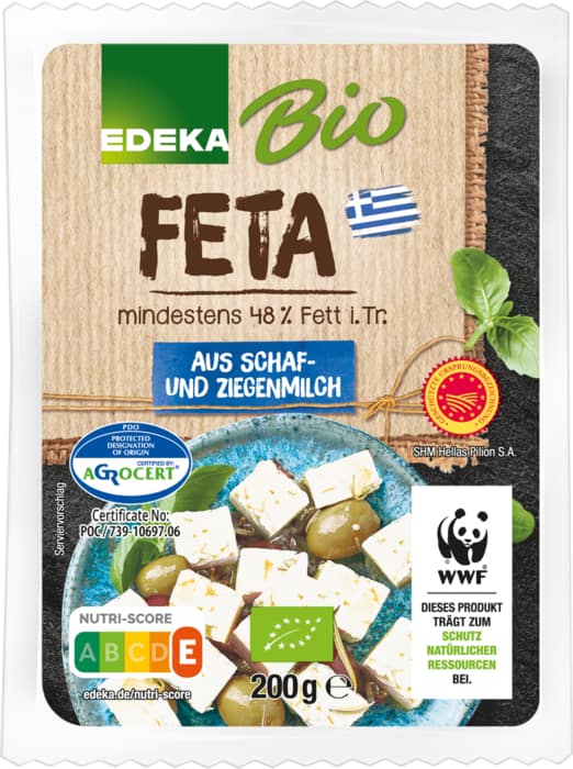 original aus Griechenland, aus Schaf- und Ziegenmilch, eingelegt in Salzlake, mindestens 48% Fett i. Tr., 200g Packung, (1kg=9.95)