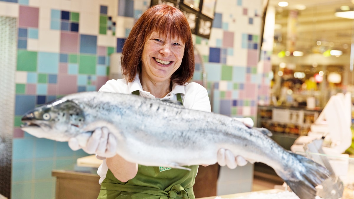In der Vorkassenzone findest du unsere separate Fischtheke mit Bedienung durch Andrea Labjuhn und ihr Team. -