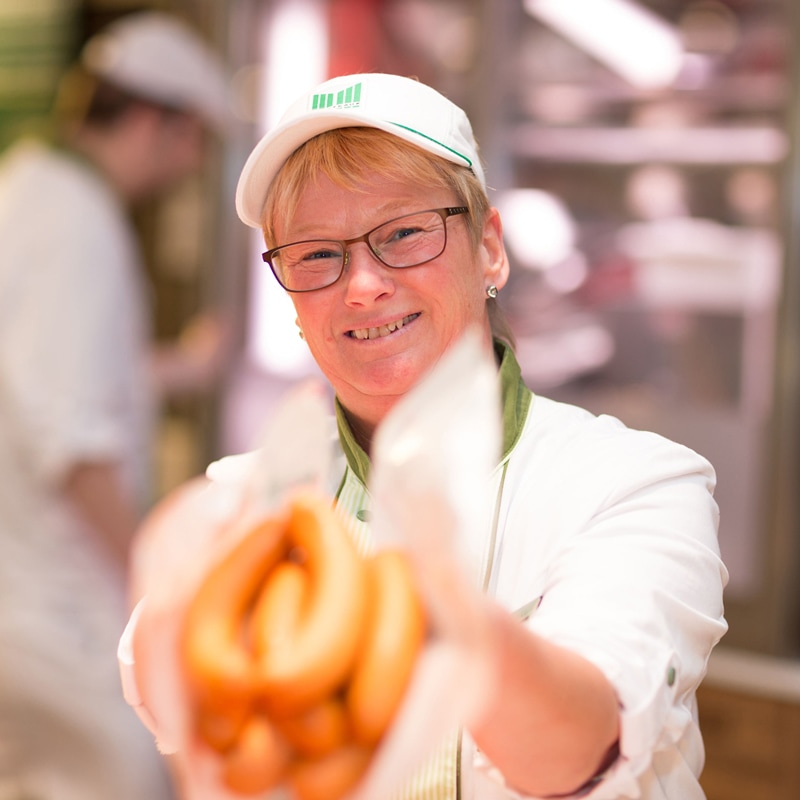 Knusprige Brötchen, Brote, Laugengebäck, Kuchen, süße Backwaren und Snacks – all das erwartet dich täglich frisch in unserer Bäckerei.