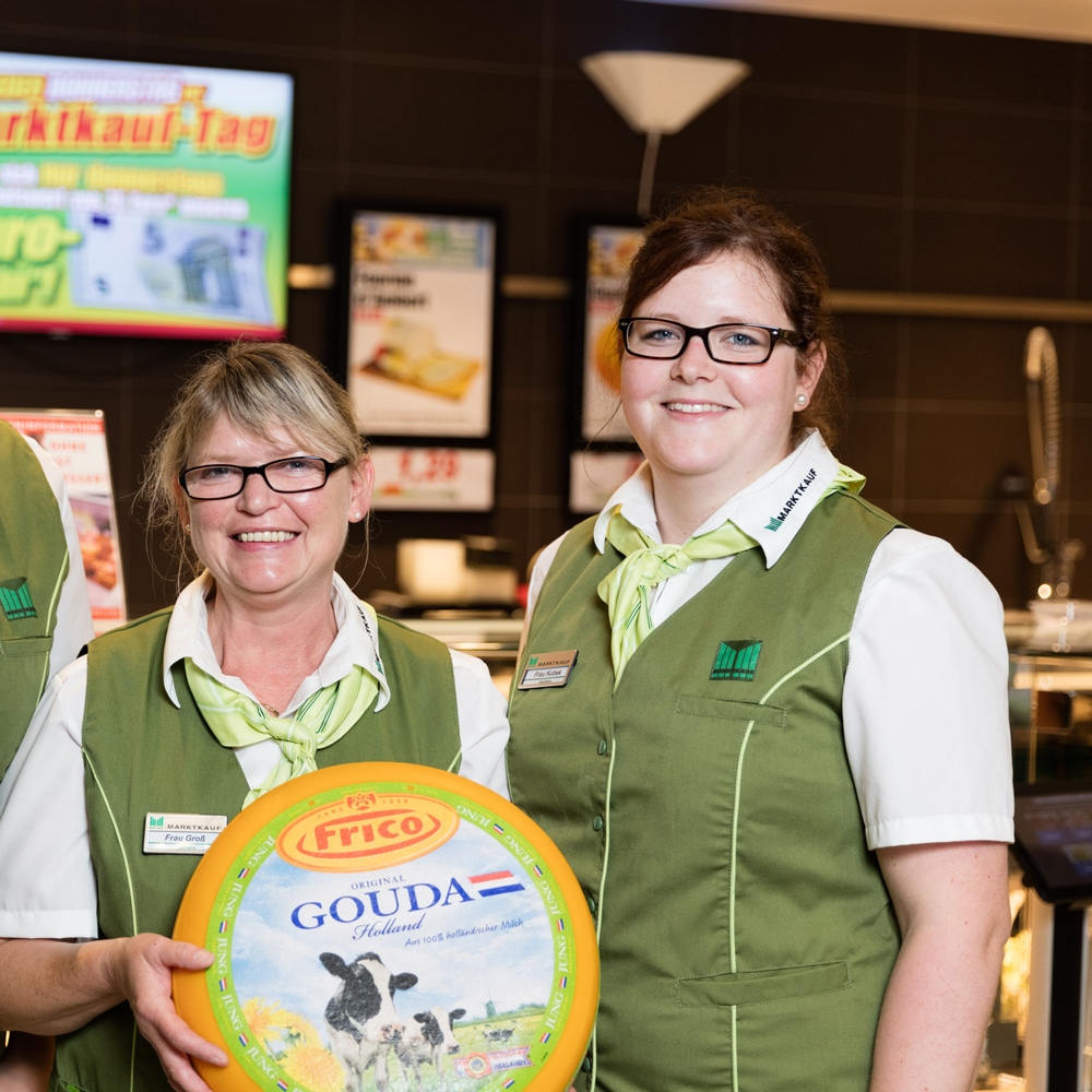Karin Groß und Claudia Kubek halten an der Käsetheke große Köstlichkeiten und feine Spezialitäten für dich bereit. -