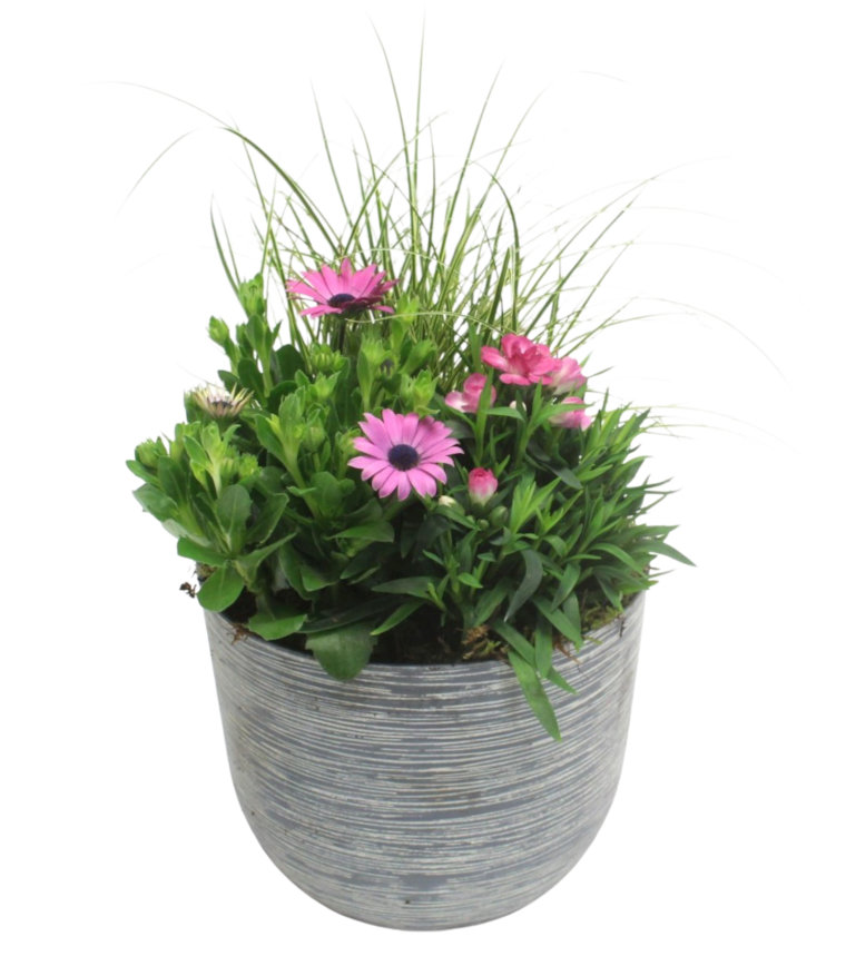 mit Bornholm Margerite, Gartennelke und Gras, versch. Farben, 19 cm Topf